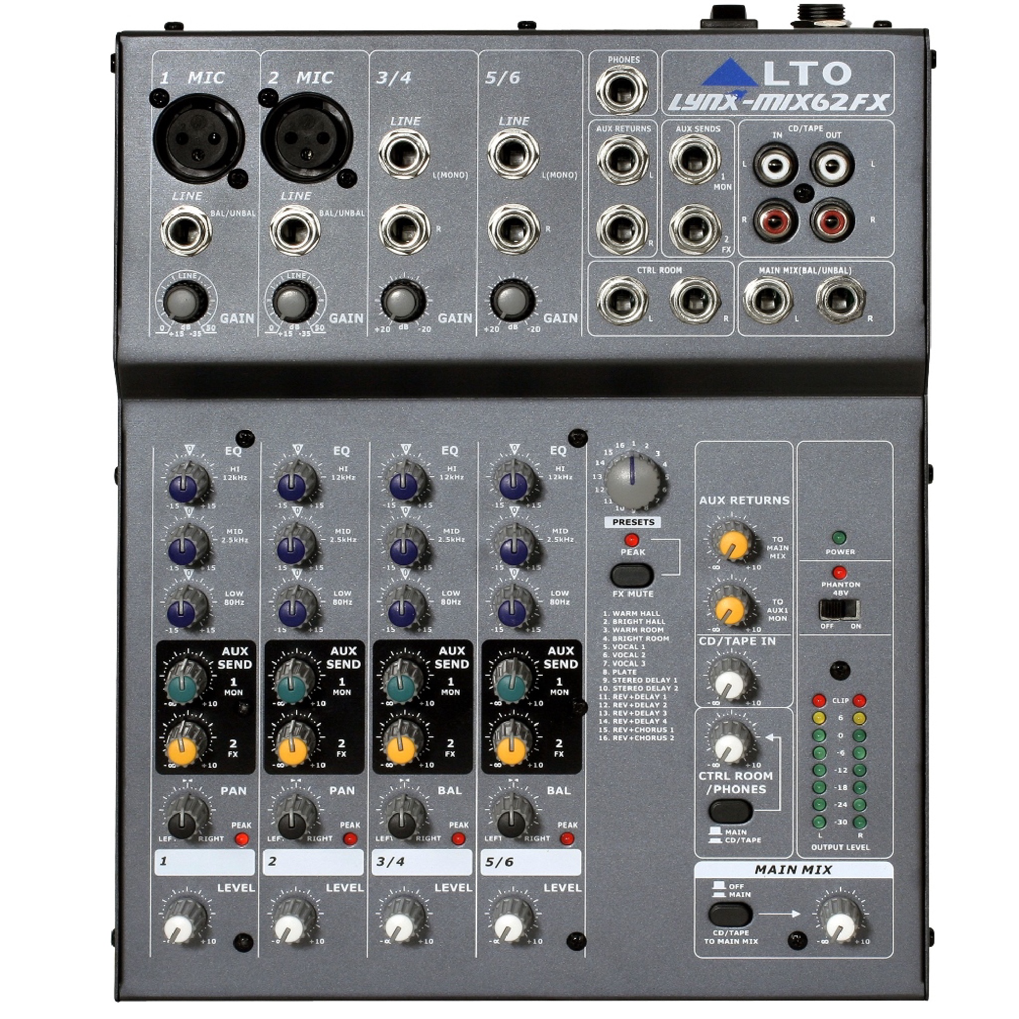 4 mono csatorna XLR és szimmetrikus jack csatlakozókkal, 48V-os fantom táp, gain szabályzó és kapcsolható alulvágó szűrő (75Hz)