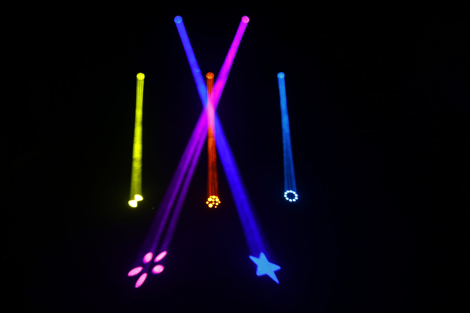 Multi Hybrid: SPOT/BEAM/FLOWER/WASH, 60W-os COB leddel szerelt. Végtelenített PAN/TILT mozgás