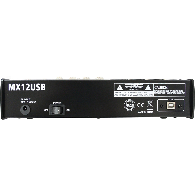 12 csatornás keverőpult USB csatlakoztatási lehetőséggel.